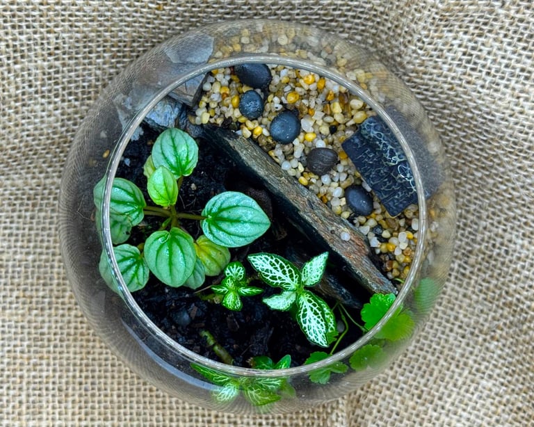 Step into a world of green-glass dreams and miniature wonderlands. This gallery showcases past terrarium creations—each one lovingly handcrafted and uniquely imagined. From fairy forests and mossy mountains to serene zen-scapes and gothic grottos, these designs are here to inspire your next custom piece.